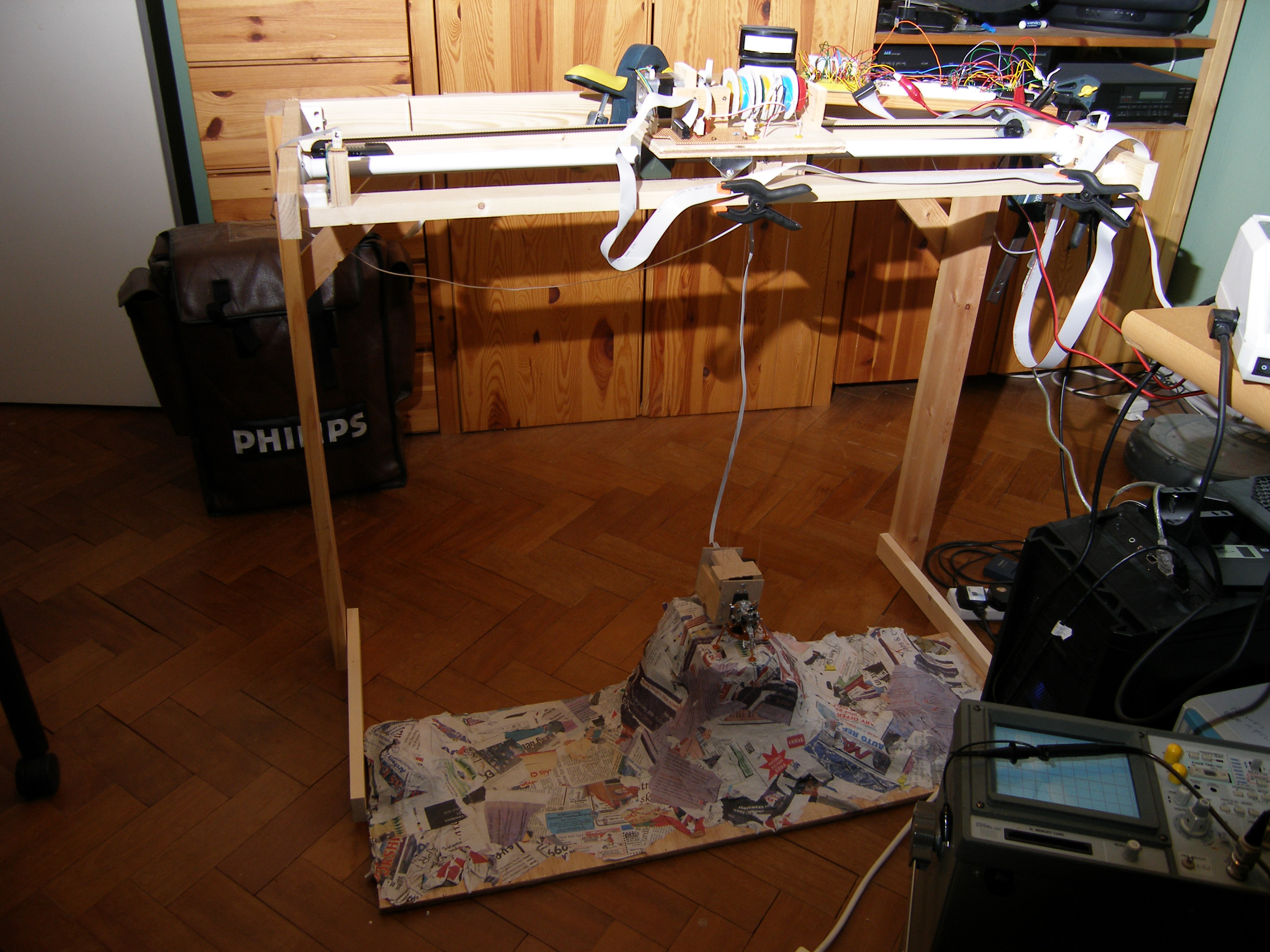 I started thinking about Lunar Lander and acquiring parts in spring 2008, and started making things in early winter. To have something that was portable and easy to test with, I started out with just the mechanism and landscape as a unit. This would just about fit in my study so I could do the software indoors over the winter. The working prototype was ready in time for Maker Faire UK in March 2009. Final construction of the arcade version went on until summer 2009.