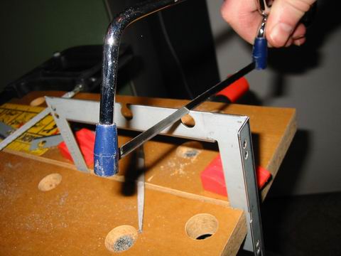 Having cut off the flanges you now need to cut slots so the blue grommets can be inserted in the remaining frame (figure 2).