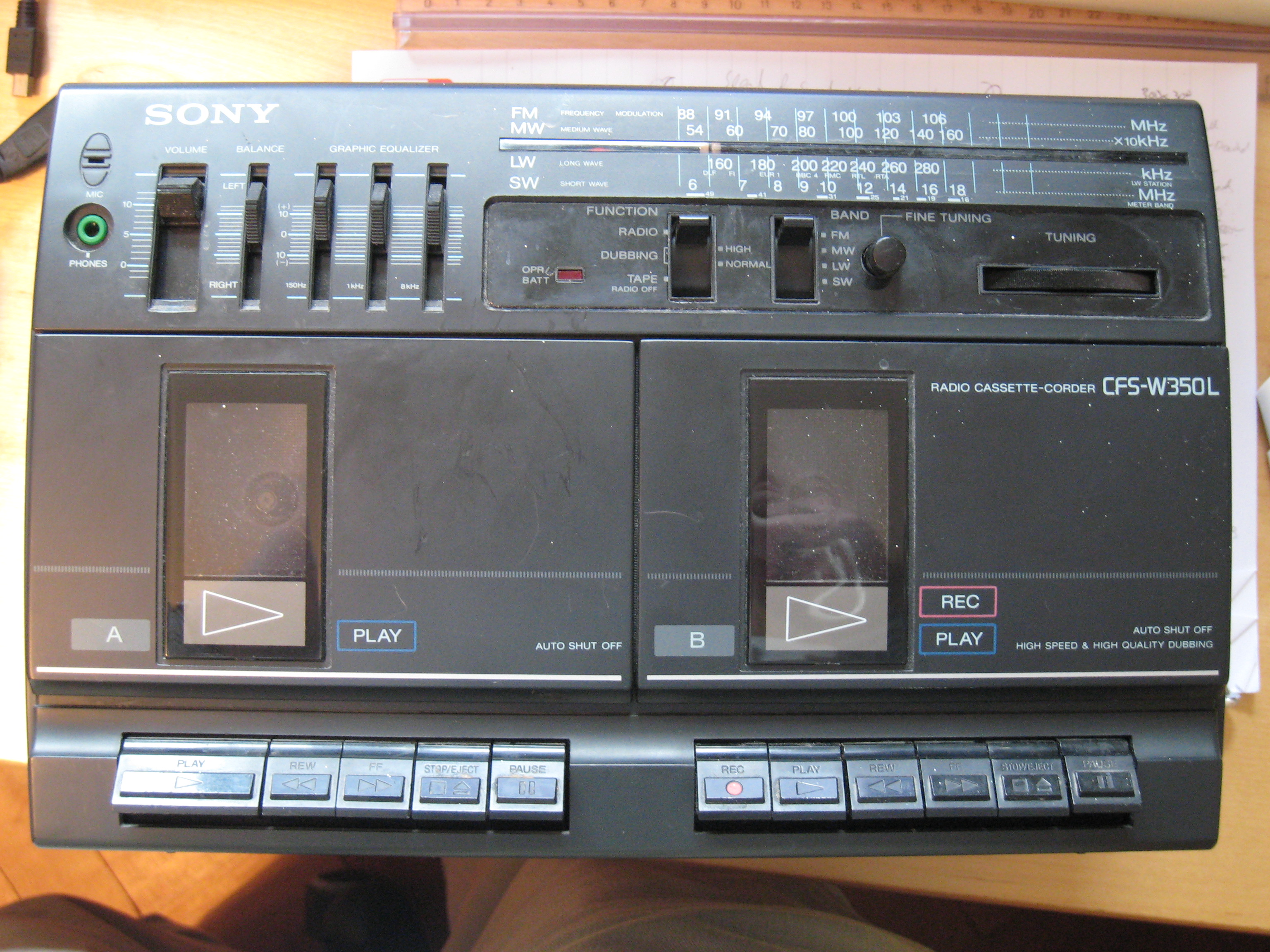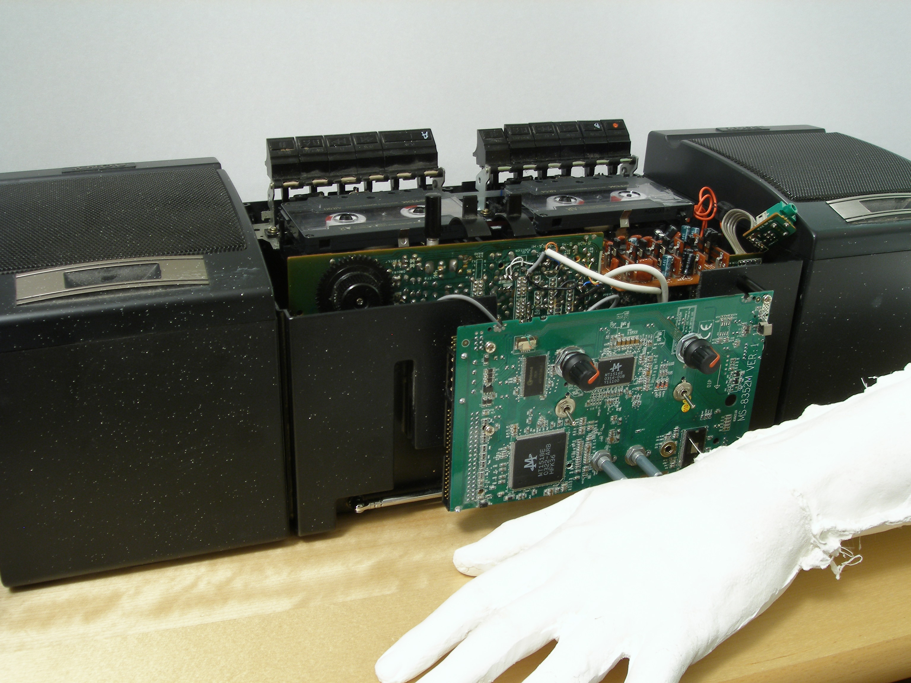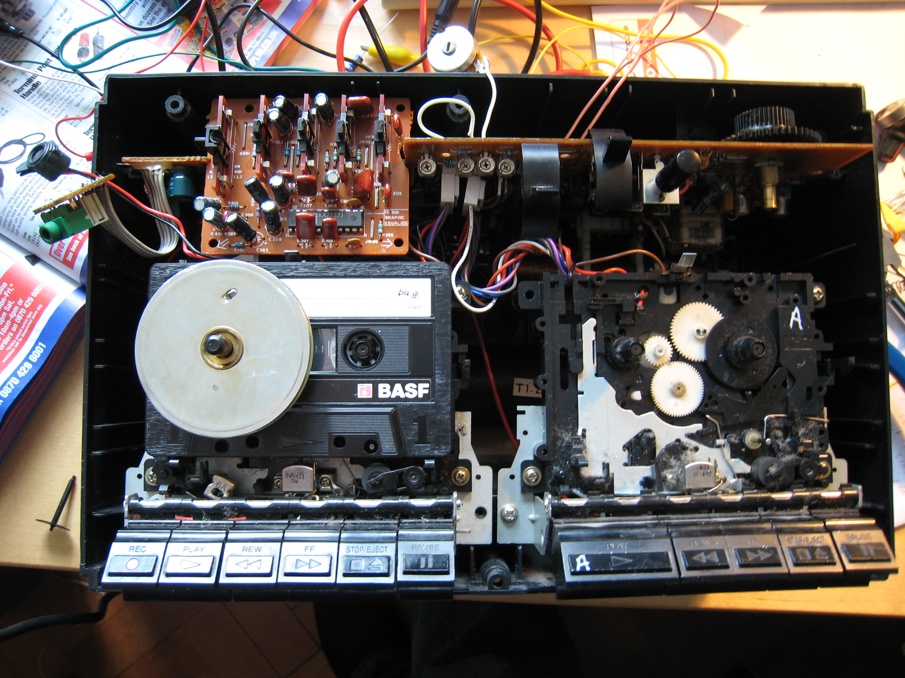I've wanted to do a cassette deck hack for a while, so when a friend threw out his 80's ghetto blaster just before BurningDork 2007 it seemed too good an opportunity to miss.
